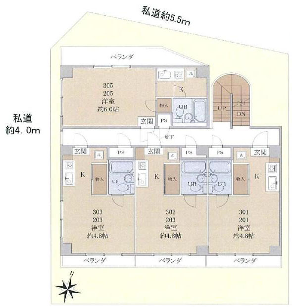 1:北 / 私道 / 幅員5.5m / 無
