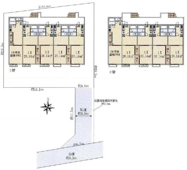 1:南 / 私道 / 幅員4m / 有